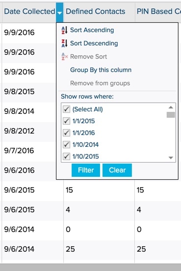 Now when you filter the date column in a data grid style report, you’re presented with a hierarchy of filter options—Year, Month and Day. Each category can expand and collapse, letting you quickly scroll to find the dates you need.